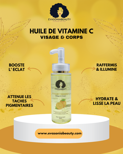L'huile vitamine C visage et corps illumine , hydrate, booste l'éclat et attenue les taches pigmentaires